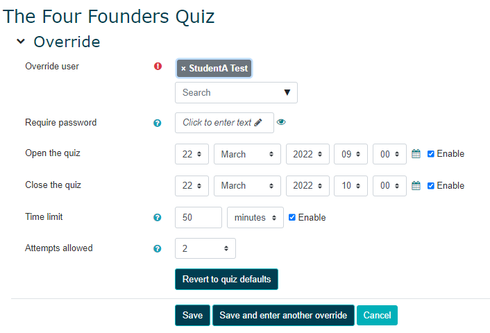 - Add a unique password for that student in the Require password textbox