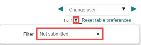 - At the top of the page, in the right hand corner, under where it says change user, select the blue filter button icon. When the drop-down appears select which group you would like to mark by, or check that this is set to what you would like to view already.