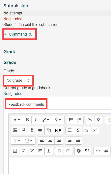 Like with most features, there are several different ways to mark in Moodle, but in essence there are 3 ways to grade and add feedback: