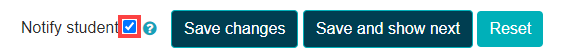 - At the bottom, in the middle of the page: check off notify student if you would like students to receive a Moodle notification of their now graded assignment.