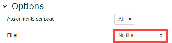 There are a number of additional ways you can navigate to assignment pages directly within Moodle without accessing the submission notification email. Once you have navigated to the appropriate assignment page, you can follow the instructions above to search for or filter student submissions. We’ll include a few options below so you can decide what works best for your workflow.