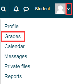 One way students can view their grades is, by signing into Moodle, going to the top right corner where their name is, clicking the drop-down and selecting grades. Once on this page, they can also click on the course name for more details on this grade.