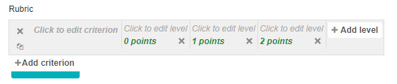 - Build your rubric by clicking edit criterion and add descriptions and assign points to each level by clicking edit level. Add additional criteria and levels as needed.