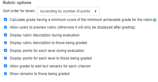 Enabling Allow user to preview rubric is recommended so students can see in advance how they will be assessed.