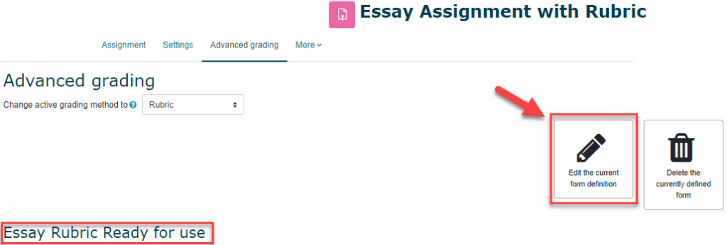 - You will note that your rubric is now ready for use. Return to the Advanced Grading tab to edit your rubric if needed.