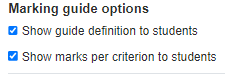 - Set the marking guide options to determine whether the guide definition and marks per criterion are displayed to students.