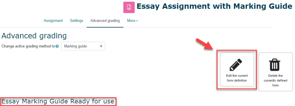 Before creating your marking guide, you must first update the grading method in your Assignment activity settings.