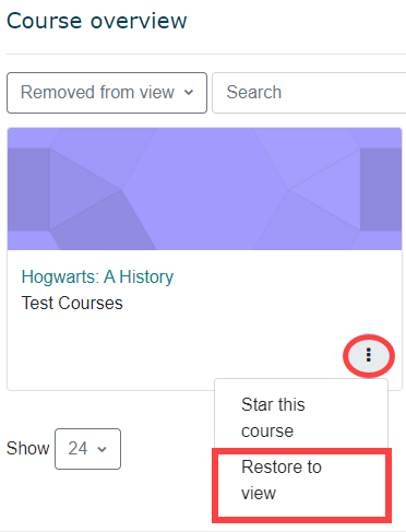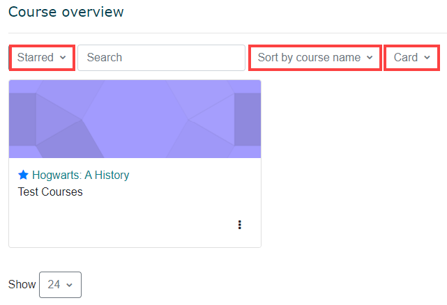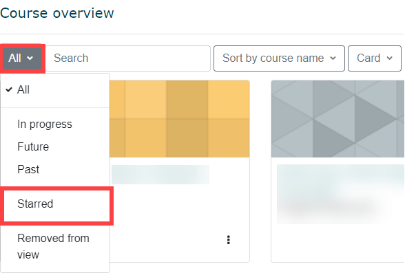 - Once you do this, you can then filter by starred courses in the course overview block. Moodle will remember your setting change and display all your stared courses the next time you visit your dashboard.
