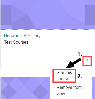 - To set a course as a favourite go to the Course overview block, select the three vertical bullets for the course that you would like to favourite and select Star this course.