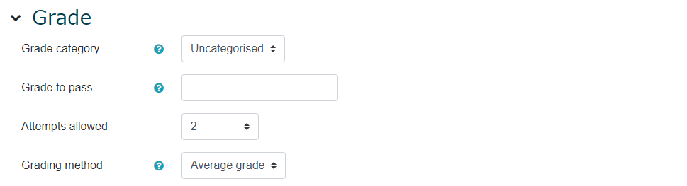 Grading method: If multiple attempts are allowed, specify how students will be graded: Highest grade, Average, First attempt, or Last attempt.