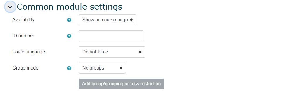 Visible: Set whether or not an assignment is visible to students. By default, new assignments are set to Show. (This is comparable to using the Hide/show icon for the activity on your course page.)