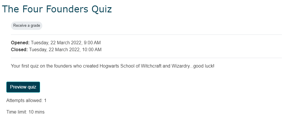 - Grade requires students to achieve a specified grade on a different grade item in order to access this quiz.