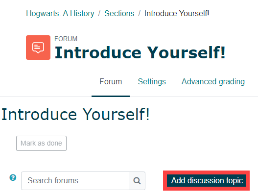 - Go into your course and for your forum, ensure whole forum grading is set up in the forum settings.